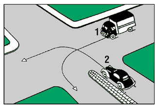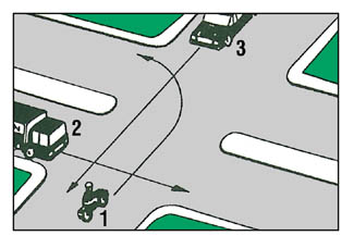 Te niset para automjetit No.2 dhe ne vazhdim te qendroje ne mes te kryqezimit duke dhene perparesi kalimi tek automjeti no.3.