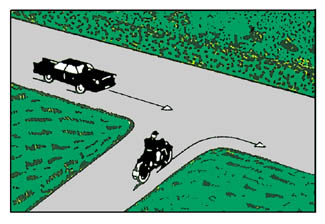 Motocikleta pasi vjen nga e djathta e automjetit.