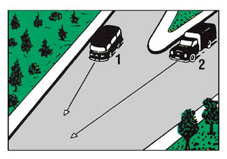 13. Kush nga shoferet e dy mjeteve duhet te prese te kaloje tjetri: